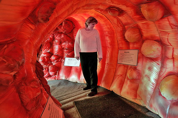 A vastagbélrák veszélyére és megelőzésére hívja fel a figyelmet az a szuper méretű vastagbél az USA-ban, melyben az érdeklődők a kapszulához hasonlóan végighaladva szembe találkozhatnak az egyes vastagbélben gyakori elváltozásokkal és betegségekkel (diverticulumok, polypok és daganatok), ezáltal érzékelve azok veszélyét és a szűrés fontosságát.